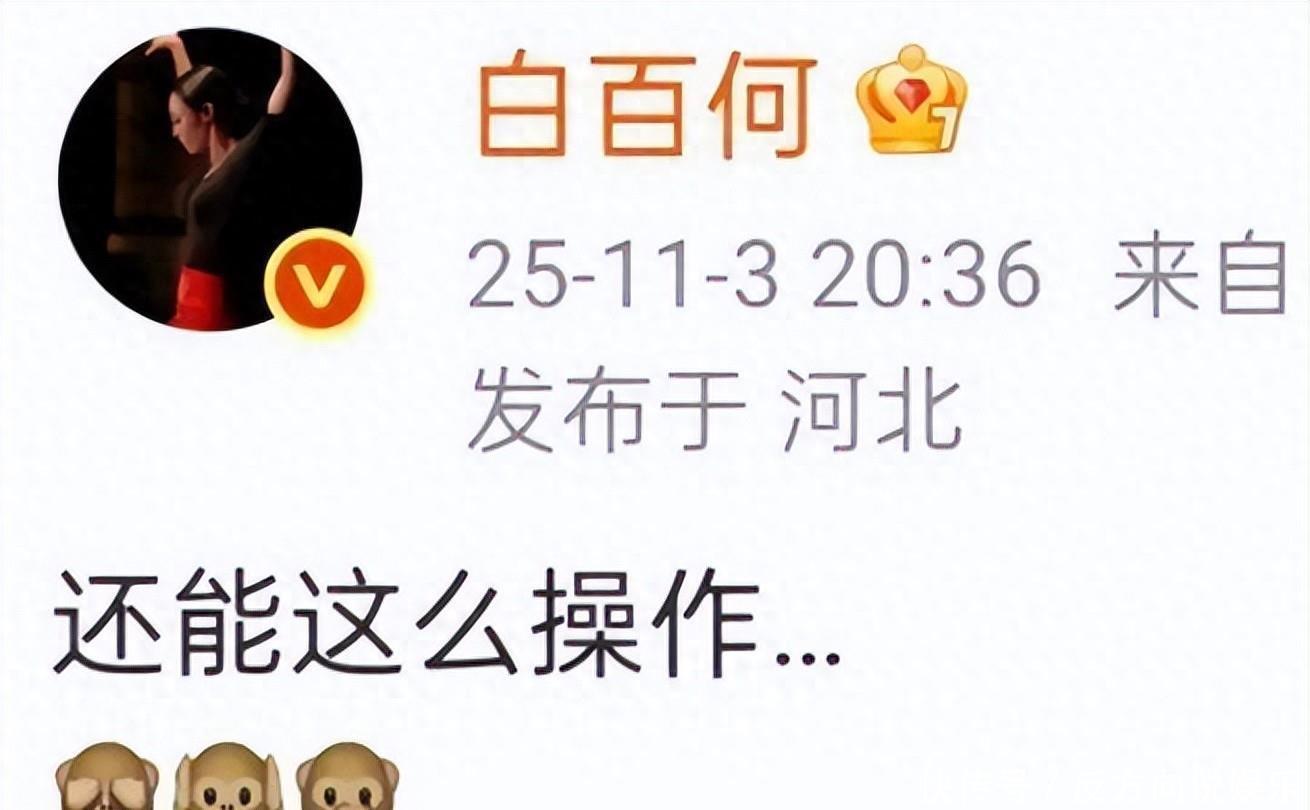 在颁奖典礼之前,白百何主演的《春树》入围主竞赛单元,她本人也被视为影后的有力竞争者。然而,令人意外的是,在奖项公布前夕,白百何却提前回国。不仅如此,她还在社交平台发布了一条意味深长的动态:“还能这么操作……” 并配上了 “捂眼捂耳捂嘴” 的表情包 。这条动态一经发出,瞬间引发了网友们的热议和猜测。大家纷纷猜测,白百何此举究竟是何用意?难道是对电影节的某些安排不满?